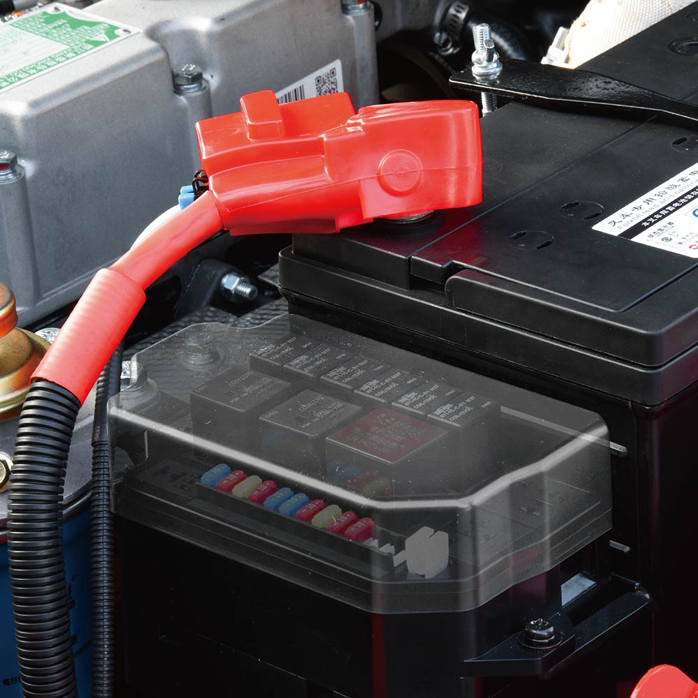 The distance to ground is 280mm, it offers greater maneuverability and keep the truck moving in the roughest of applications, and yet we keep a very low center of gravity, by using a distributed weight in the forklift, giving it an excellent stability.