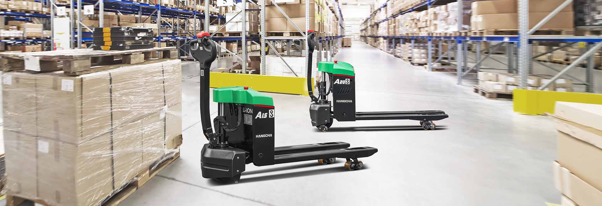 The A Series 1.5t & 2t Mini Lithium-ion Pallet Trucks are new generation of products developed by Hangcha for warehouse and logistics applications. They feature fast charging, advanced performance, comfortable operation, safety, reliability and low maintenance cost with the Li-Ion technology. The trucks are ideal tool for loading, unloading, and handling palletized goods in warehouses, supermarkets, workshops and homes.