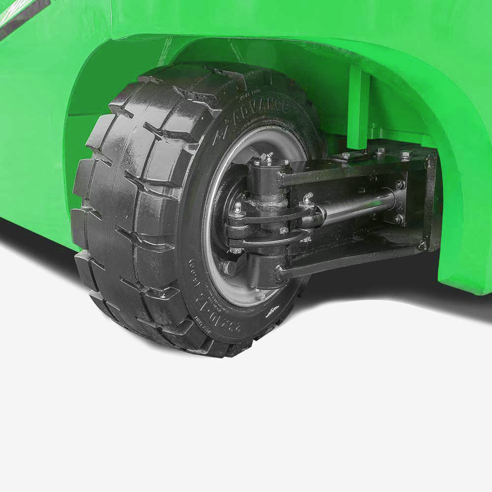 The internationally advanced parallel arrangement is adopted for traction motor, and the battery is sunken to chassis, resulting in lower gravity center and better stability of entire truck.