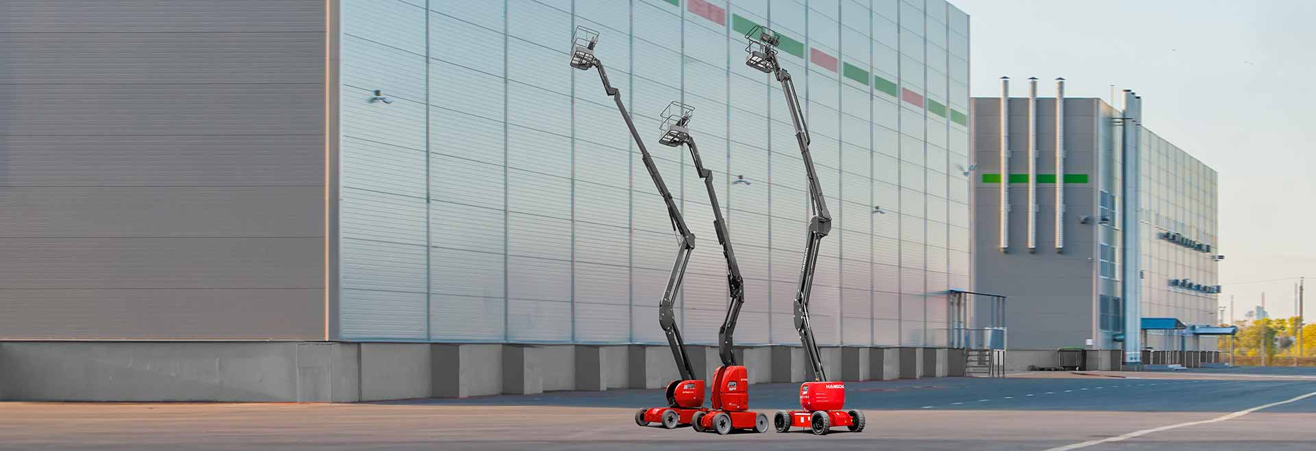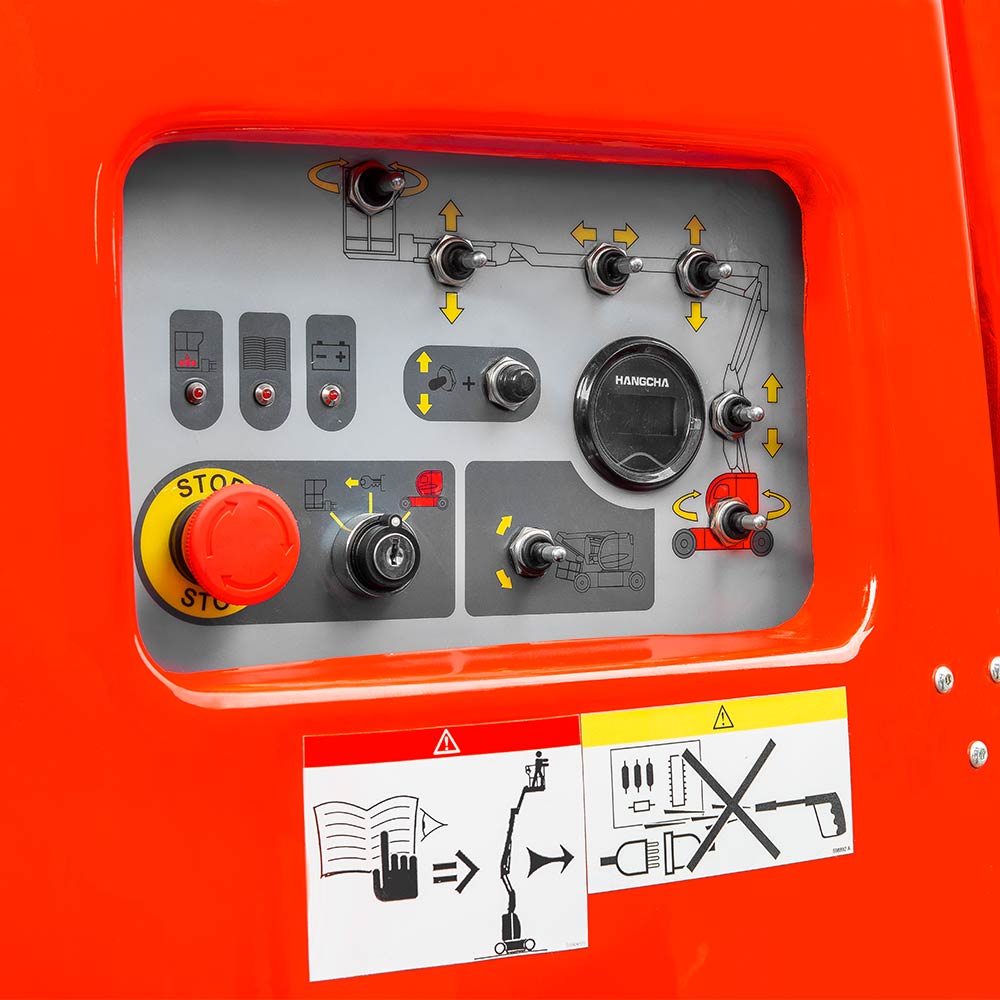 This machine has articulation boom which can work across the obstacle. It can carry two people and some tools in the basket. The machine allows you to operate it in limited place with narrow design and small radius turning system. You can operate the machine from basket or base control, so when you want to move it, you do not need to go down the machine. Multi-motion control allows you to operate several actions simultaneously. With this machine, you can do work more efficient and comfortable.