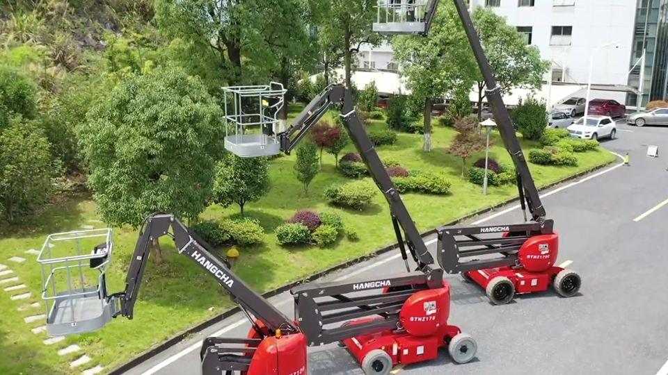 This machine has articulated boom which can work across the obstacle. It can carry two people and some tools in the basket and allows you to operate it in limited place with narrow design and small radius turning system. With this machine, you can do work more effcient and comfortable.