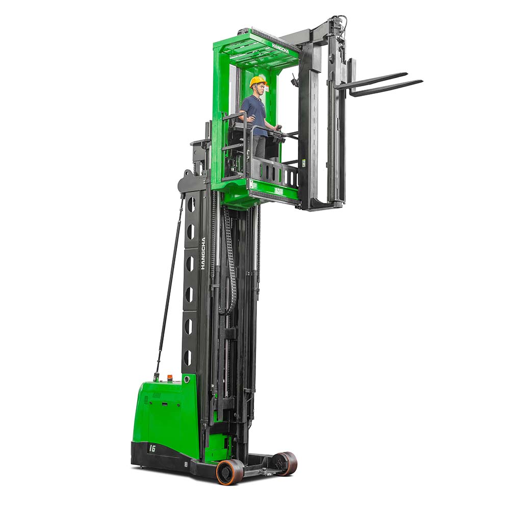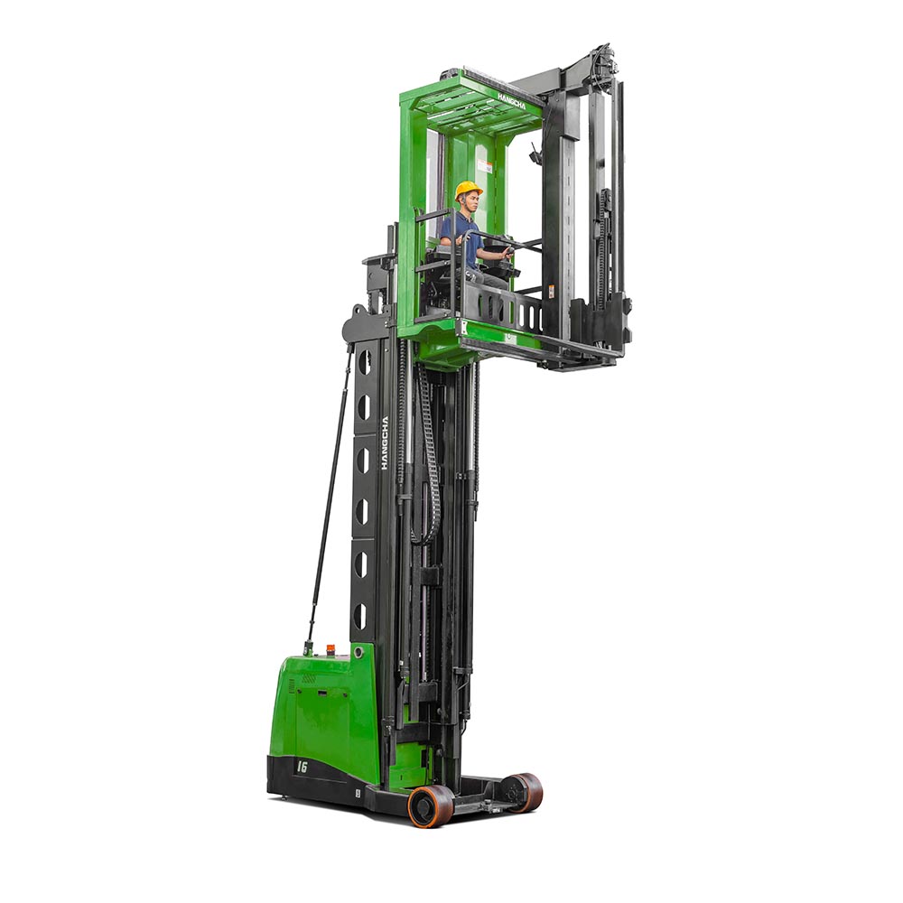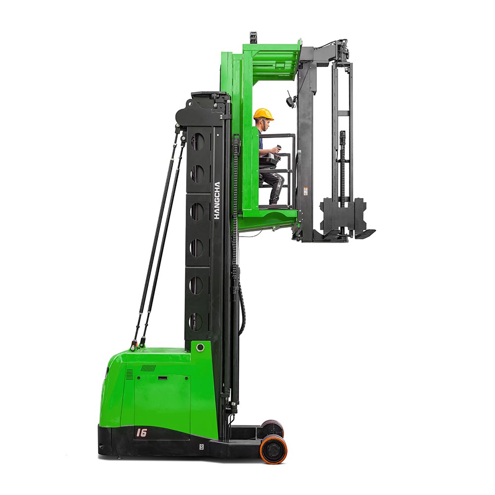 The 3,000-3,500lbs man-up tri-lateral stacker for narrow aisles and high bay warehouses can meet the needs of customers for operations in narrow aisles and high stacking heights. Featuring a high lift, high load capacity and small turning radius, as well as advanced performance, easy operations, high safety and reliability, etc., it is an ideal solution for handling and stacking long materials indoors.