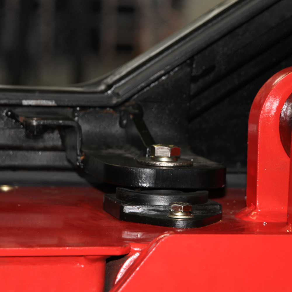 The extra foot space is provided to reduce operator fatigue significantly. The new wide-open, non-slip step makes getting in and out easy and safe. The optional Electro-hydraulic proportional control system contributes more sensitive and precise load handling. The easy-to-operate levers provide total load handling operation. An armrest is provided to reduce fatigue.