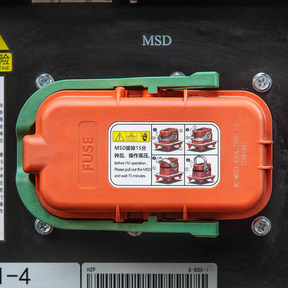 The cover of the vehicle is designed to be sealed to the water resistance level of IPX4. The electrical system has high-voltage interlocking, insulation monitoring and potential balancing functions to offer vehicle-grade safety. All the motor and electronic controls reach the dust and water resistance level of IP67, a high protection level adequate to withstand harsh operating environments. The high-voltage lithium battery is equipped with an automatic fire extinguisher for the standard configuration. The vehicle is equipped with a pipe network automatic fire extinguisher for the standard configuration. A turning deceleration function effectively reduces risk of tipping over.